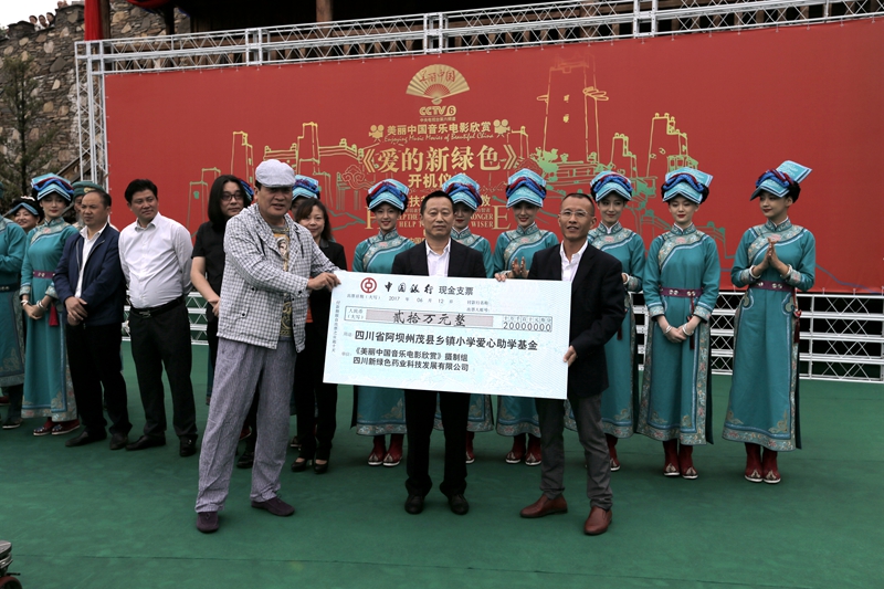 2017年6月12日,由pg娱乐电子游戏app(以下简称新绿药)投资监制的CCTV-6《美丽中国音乐电影欣赏》之《爱的新绿色》在四川省阿坝州茂县的中国古羌城举行了盛大的开机仪式。同时,新绿药和摄制组北京太阳圣火共同向茂县乡镇20所小学捐赠人民币20万元,用于精准扶贫爱心助教。据悉,该片将于2017年8月在CCTV-6《美丽中国音乐电影欣赏》首映。