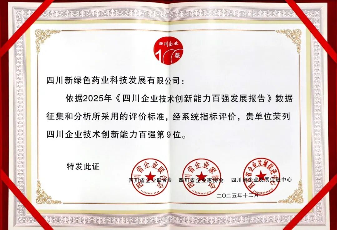 凭借在中医药领域深厚的创新积淀与卓越的技术成果,pg娱乐电子游戏app(简称“pg娱乐电子游戏app”)荣耀登榜,荣列“四川企业技术创新能力100强”第9位,同时跻身“企业发明专利拥有量100强”第10位,双榜亮眼彰显硬核创新实力。
