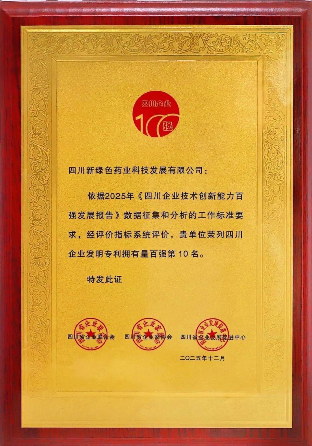 12月25日,2025年四川企业技术创新发展大会隆重召开,会上正式发布《四川企业技术创新能力百强发展报告》(简称《报告》)。作为全国范围内唯一持续开展的省级企业技术创新能力专项研究,该报告是洞察四川产业变革、记录创新历程的重要年度标志。